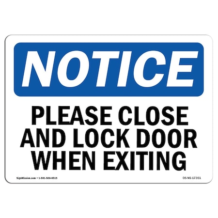 OSHA Notice Sign, Please Close And Lock Door When Exiting, 24in X 18in Aluminum