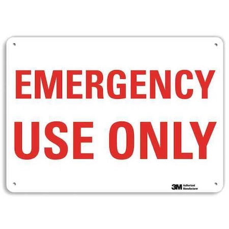 Safety Sign, Vertical Rectangle, Number of Printed Sides 1, English, Sign Legend Emergency Use Only, Sign Legend Background Color White, Sign Legend Style Text