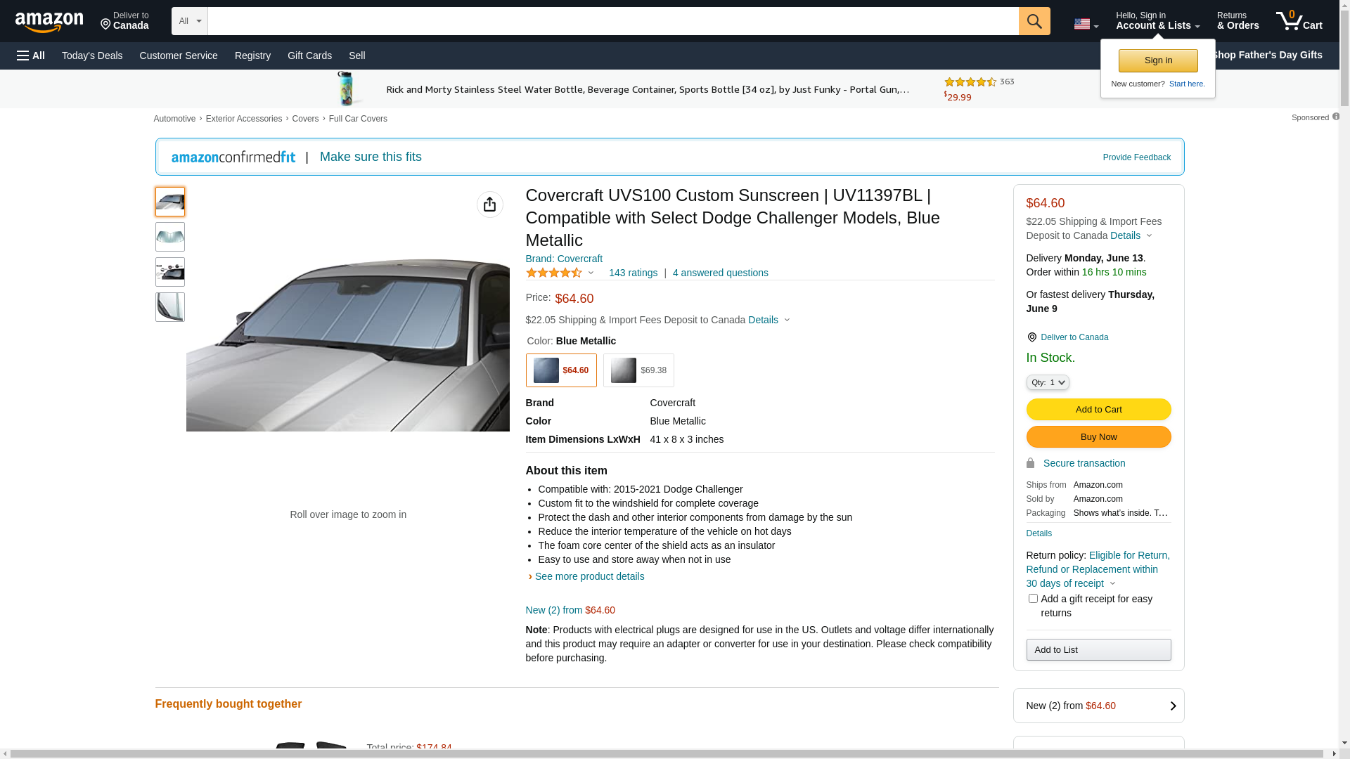 Covercraft UVS100 Custom Sunscreen | UV11397GD | Fits 2015-2020 Dodge Challenger, Gold
