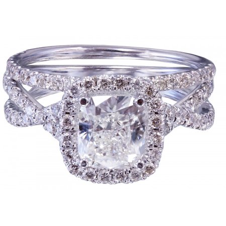 THIS BEAUTIFUL 1.50CT CUSHION CUT EGL USA CERTIFIED DIAMOND IS SET ON A STUNNING SETTING WITH LOTS OF DIAMONDS AND DESIGN