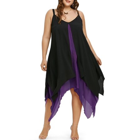 <ul> <li>This dress provides you with a flattering fit you'll love; its fabric keeps you comfortable in practically any setting</li> <li>Featuring a flowing layered handkerchief hemline and split front sheer overlay, it strikes the perfect balance of sophisticated style</li> <li>Two-tone color block boldly accents the piece; just team it up with some strappy heels and statement earrings for a glam look</li> <li>This beautiful plus size dress is perfect for strolls around the market, days at the office and nights out with your friends</li> <li>Its highly versatile design makes it great even for formal settings, like weddings, anniversaries, and dinner parties</li> </ul>