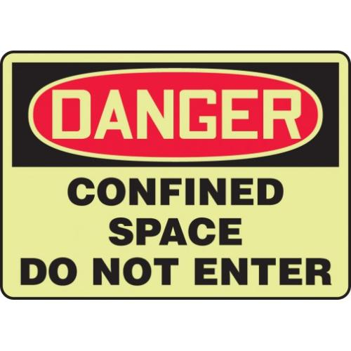 Accuform MLCS104GF Lumi-Glow Flex Adhesive Sign, Legend "Danger CONFINED Space DO NOT Enter", 10" Length x 14" Width x 0.010" Thickness, Red/Black on Glow