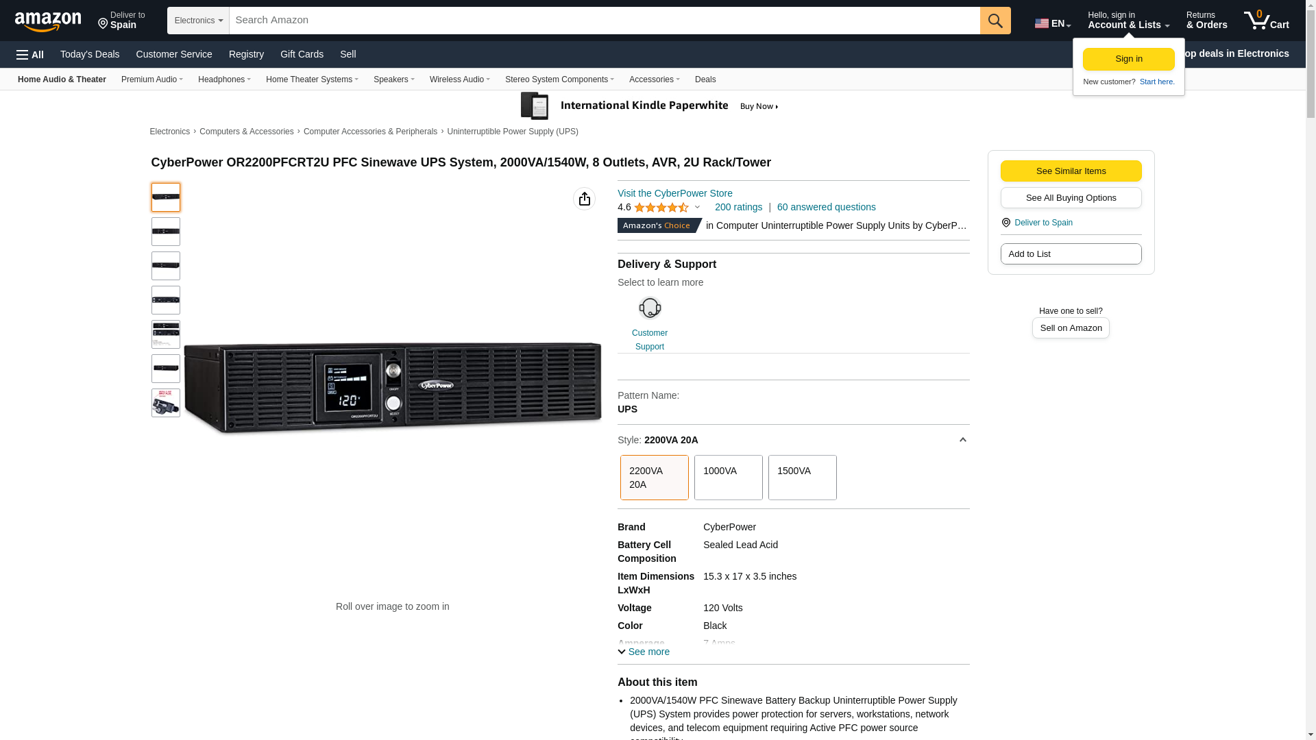 | Feature | 2000VA/1540W PFC Sinewave Battery Backup Uninterruptible Power Supply (UPS) System. Plug type and cord- NEMA 5-20P, 10 feet cord. Plug Style- Right Angle |