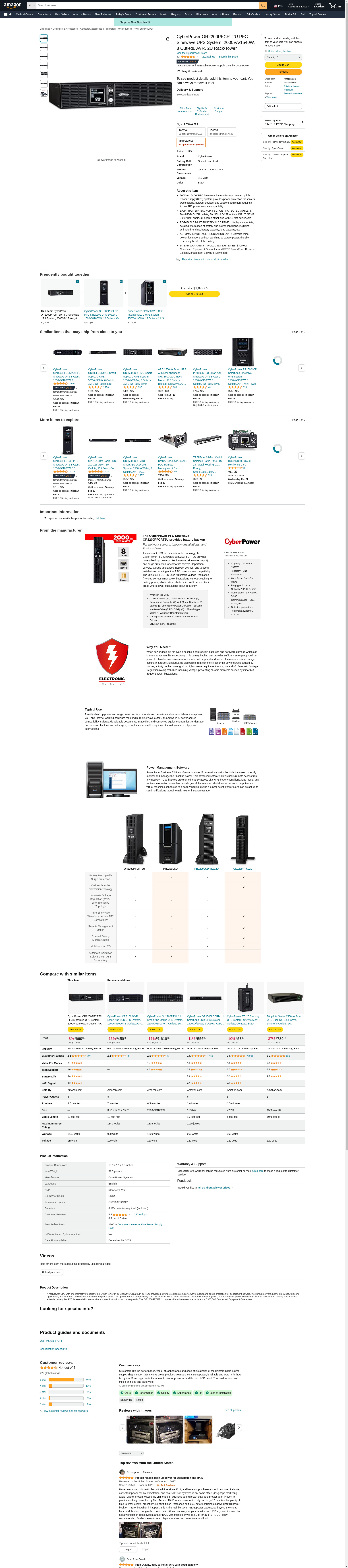 CyberPower OR2200PFCRT2U PFC Sinewave UPS System, 2000VA/1540W, 8 Outlets, AVR, 2U Rack/Tower
