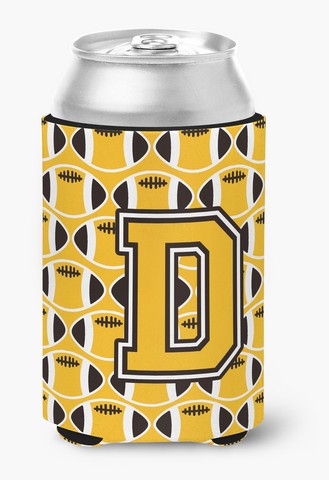 Carolines Treasures CJ1080-DCC Letter D Football Black, Old Gold & White Can or Bottle Hugger