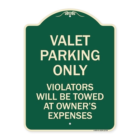 Valet Parking Only Violators Will Be Towed at Owners Expenses Aluminum Sign
