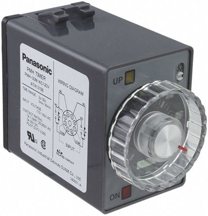 Panasonic Analog Timer - Pmh, Multi-Range, 50X36X56.7mm, Power On-Delay, 0.15Sec To 30Min, 2 Form C, 100 To 120V Ac - PMH-30M-AC120V