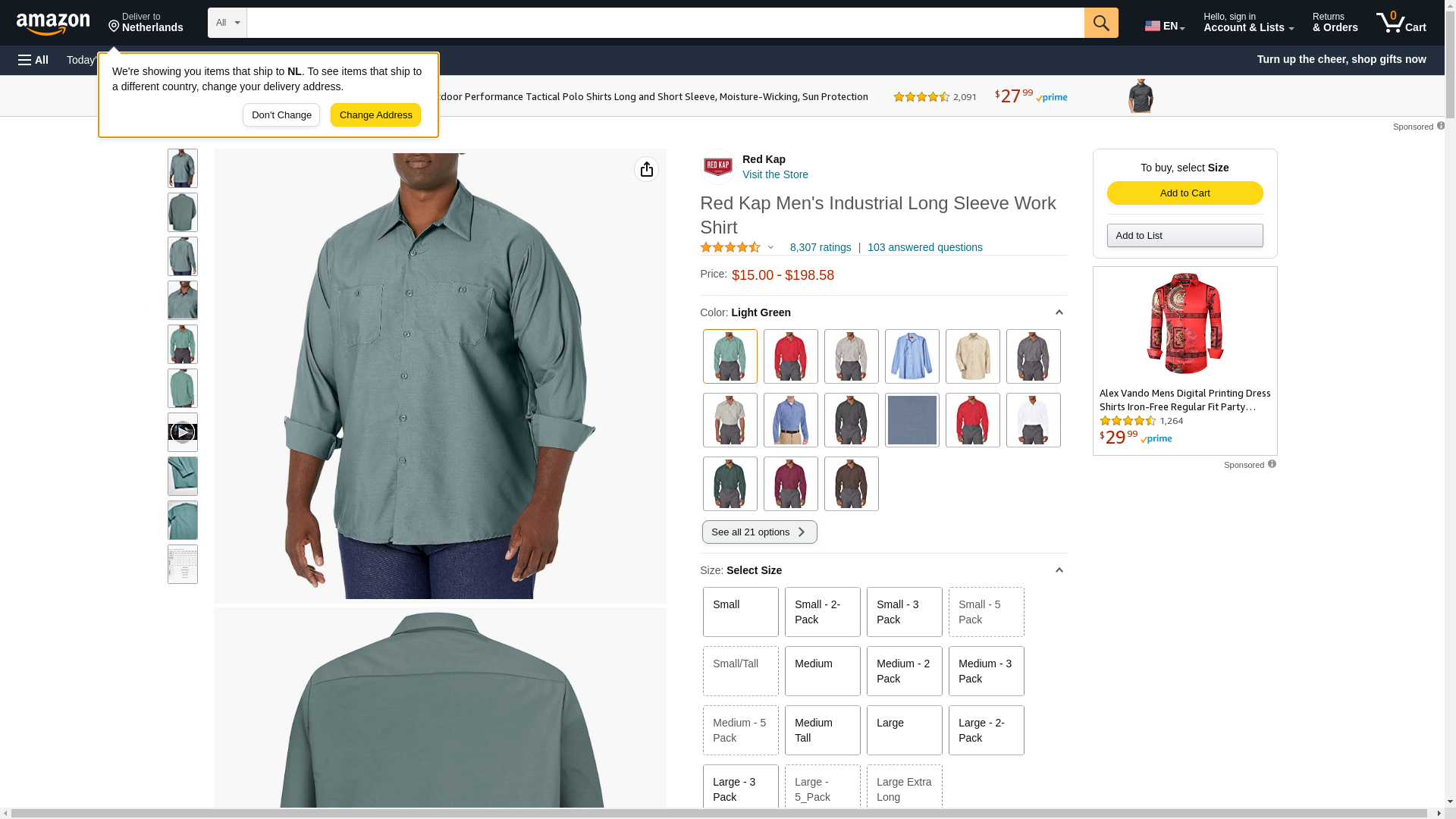 Red Kap Men's Industrial Work Shirt, Regular Fit, Long Sleeve, Light Green, 4X-Large