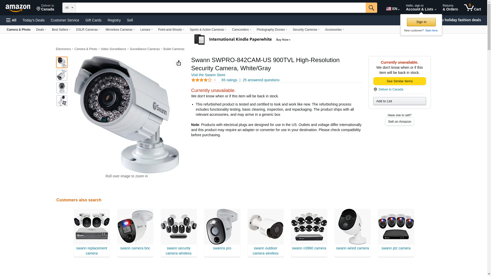 | Feature | HIGH-RES RENDERED IMAGES - The Swann SWPRO-842CAM offers a clear resolution with its 900TVL (TV Lines) camera. This tiny unit has a powerful night vision and can record images up to 82-feet or 25-meters. |