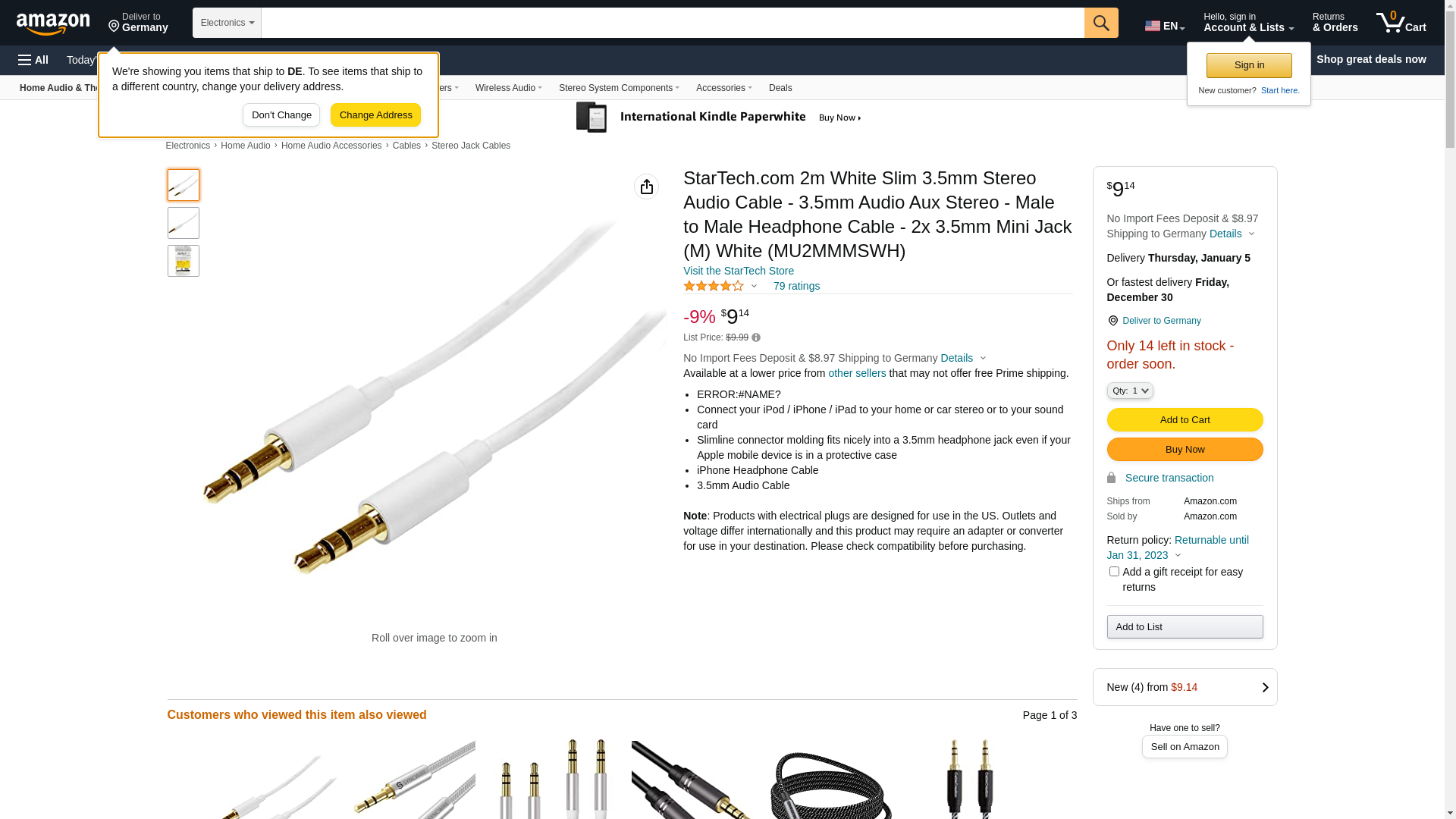 Amazon.com: StarTech.com 2m White Slim 3.5mm Stereo Audio Cable - 3.5mm Audio Aux Stereo - Male to Male Headphone Cable - 2x 3.5mm Mini Jack (M) White (MU2MMMSWH) : Electronics