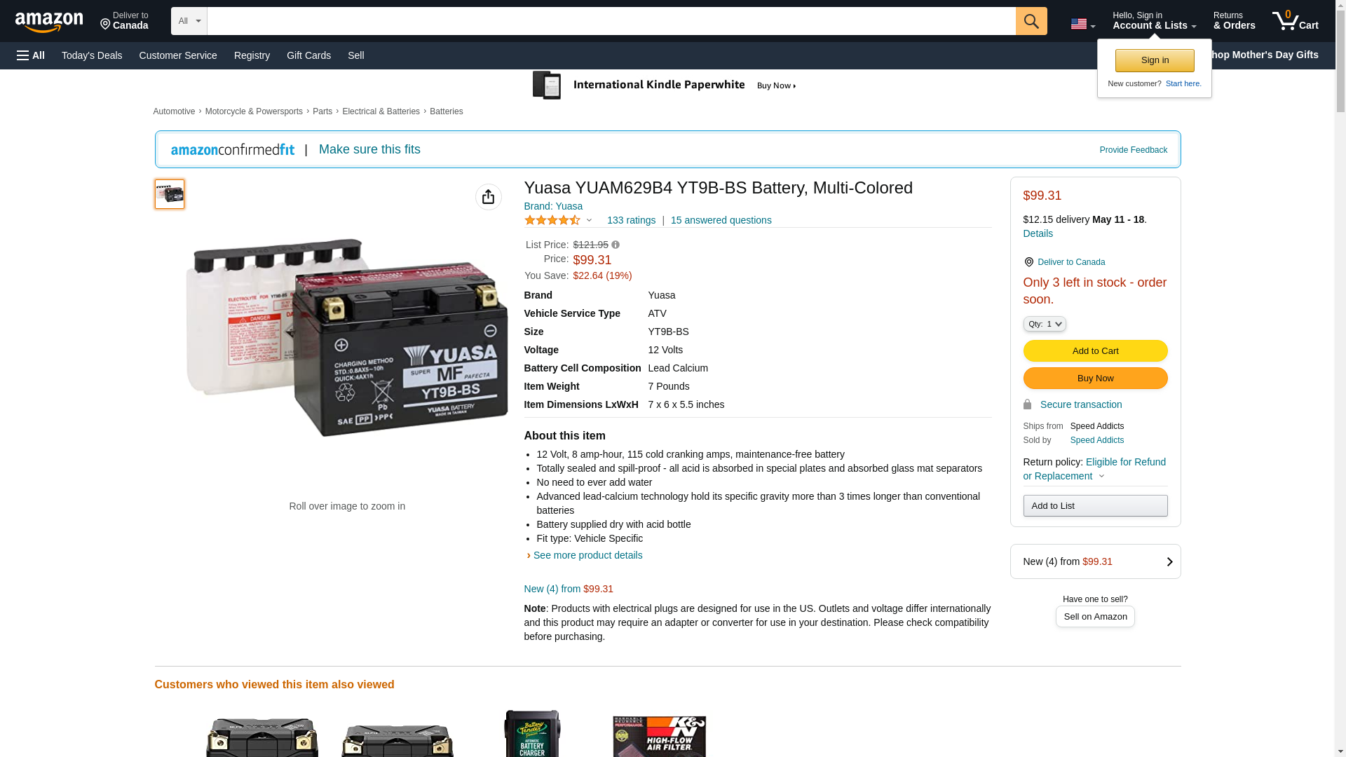 Yuasa YUAM629B4 YT9B-BS Battery, Multi-Colored