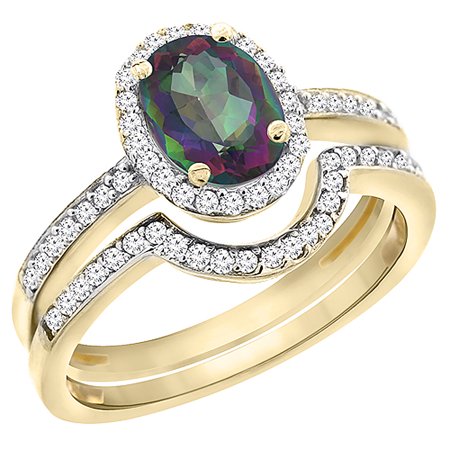 10K Yellow Gold Diamond Natural Mystic Topaz 2-Pc. Engagement Ring Set Oval 8x6 mm, sizes 5 - 10