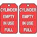 Accuform Signs 5 7/8" X 3 1/8" Red And White PF-Cardstock Perforated Cylinder Status Tag "Cylinder Empty In Use/Full" (25 Per Package)