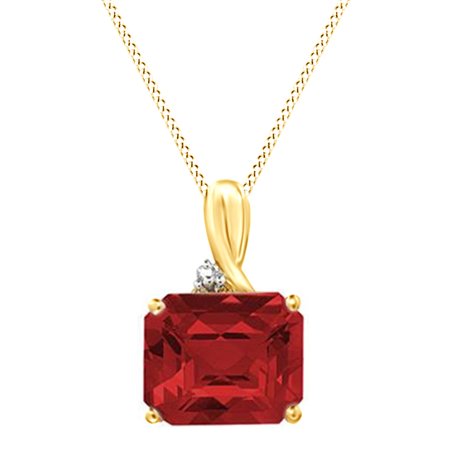 <ul> <li>Metal Type : 10k Solid Yellow Gold GUARANTEED, Authenticated with a 10k Stamp</li> <li>Gem Type: Simulated Garnet & Natural White Diamond</li> <li>Gemstone Clarity :VVS1-VVS2 ; I2-I3</li> <li>Gemstone Color : Red ; I-J</li> <li>Gemstone Shape : Emerald Shape ; Round Shape</li> <li>Stone Creation Method : Simulated; Natural</li> <li>Setting :prongs</li> </ul>