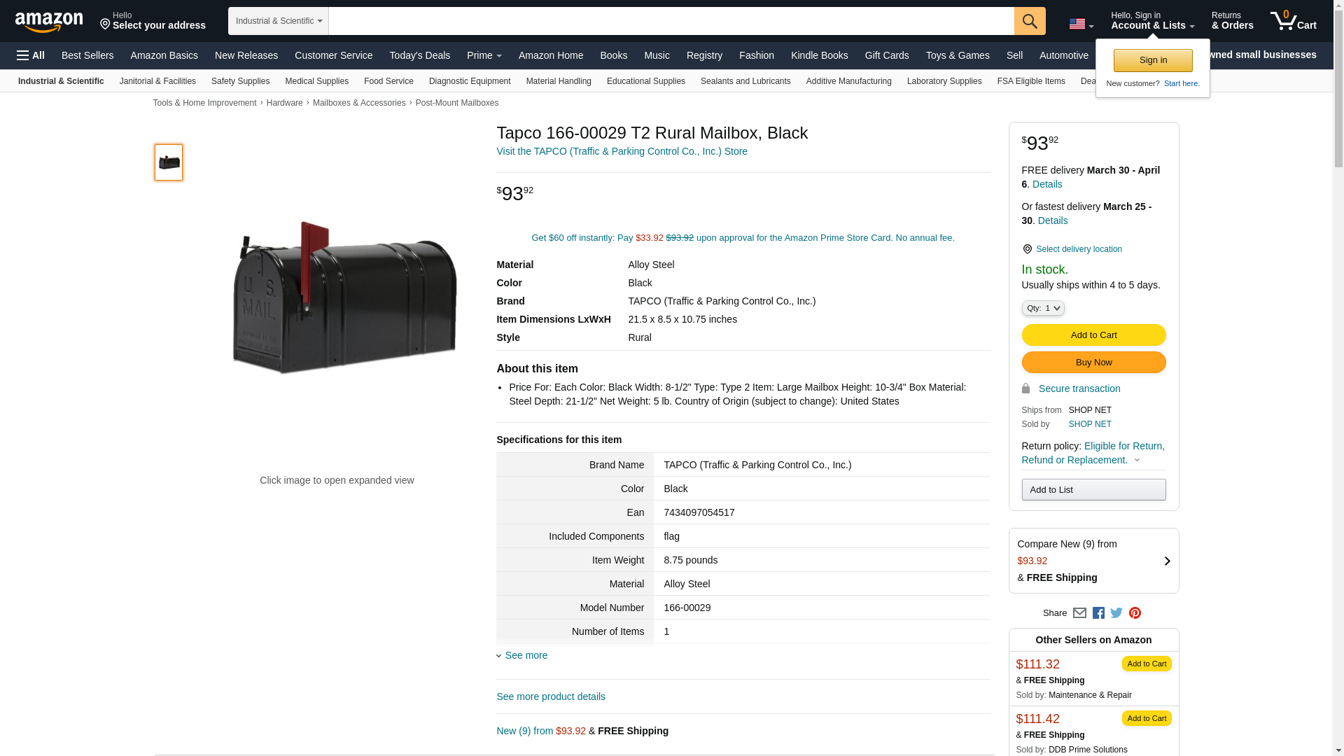 Tapco 166-00029 T2 Rural Mailbox, Black