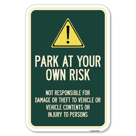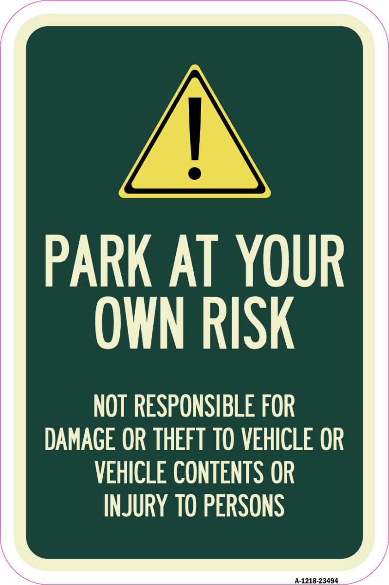 Park at Your Own Risk-Not Responsible Heavy-Gauge Aluminum Sign