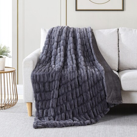 Modern Threads Luxury Faux Fur Ruched Throw Telluride Gray