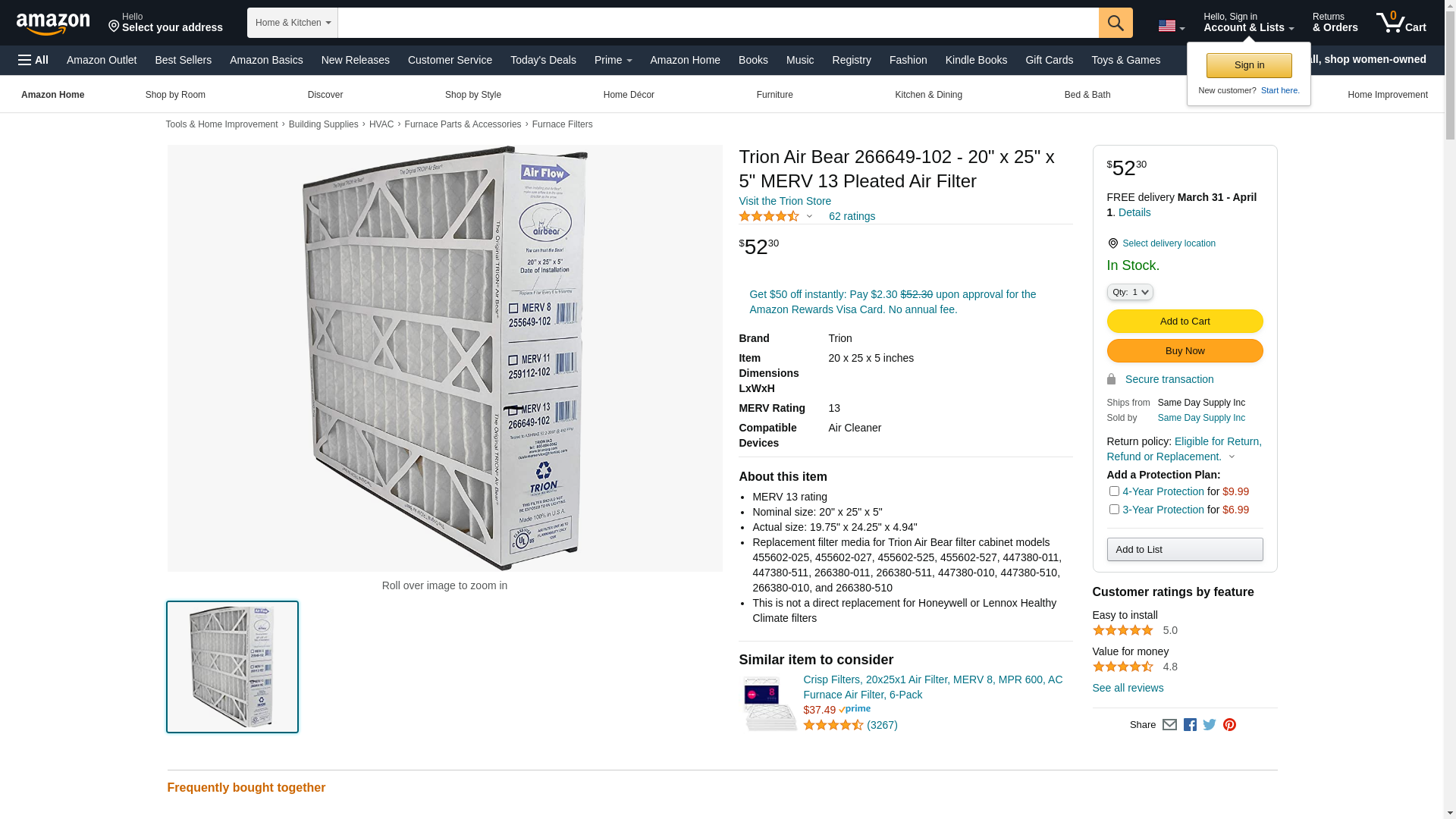 Edmondson Supply | Trion 266649-102 Pleated 20x25x5 MERV-13 Air Filter Media (1 filter)