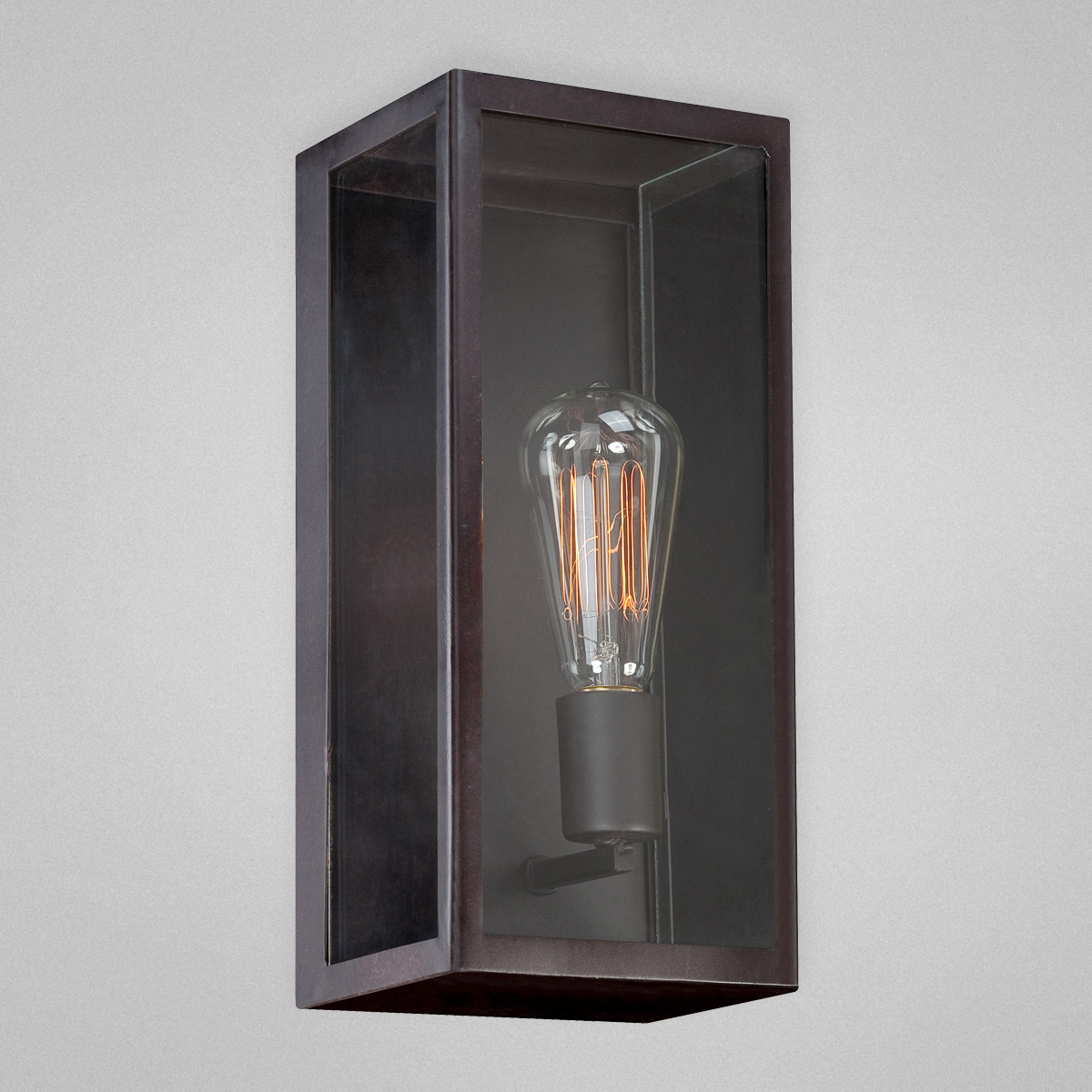 Eurofase 25602-012 Retto Rectangular Metal Framework with Clear Glass Outdoor Wall Mount Lighting, Wet Rated, 1-Light 60 Watt, 12"H x 6"W, Bronze