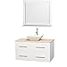Wyndham Collection Centra 42 inch Single Bathroom Vanity in Matte White, Ivory Marble Countertop, Pyra Bone Porcelain Sink, and 36 inch Mirror