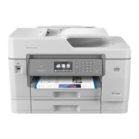 - ALL IN ONE PRINTER: With the Brother MFC-J6945DW INKvestment Tank All-in-One Inkjet Printer, you can print, copy, scan, and fax your documents all in one device, making it ideal for small businesses and home offices. Print documents at a maximum resolution of 4800 x 1200 dpi. The 500-sheet input tray and 100-sheet bypass tray support up to 11 x 17" paper sizes. The MFC-J6945DW can reach up to 22 ppm for monochrome prints and up to 20 ppm for color prints. There is also duplex printing support.