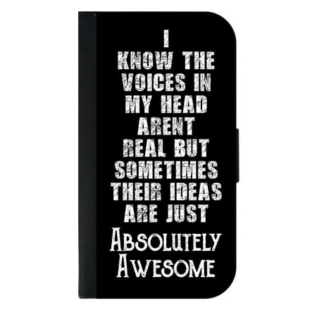 Funny Novelty Quote - Voices in My Head - in Black and White - Wallet Style Phone Case with 2 Card Slots Compatible with the Standard Samsung Galaxy s8 Universal