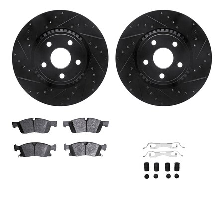 Dynamic Friction Company Front Brake Rotors Drilled and Slotted Black with 5000 Euro Ceramic Brake Pads includes Hardware - 8612-42003