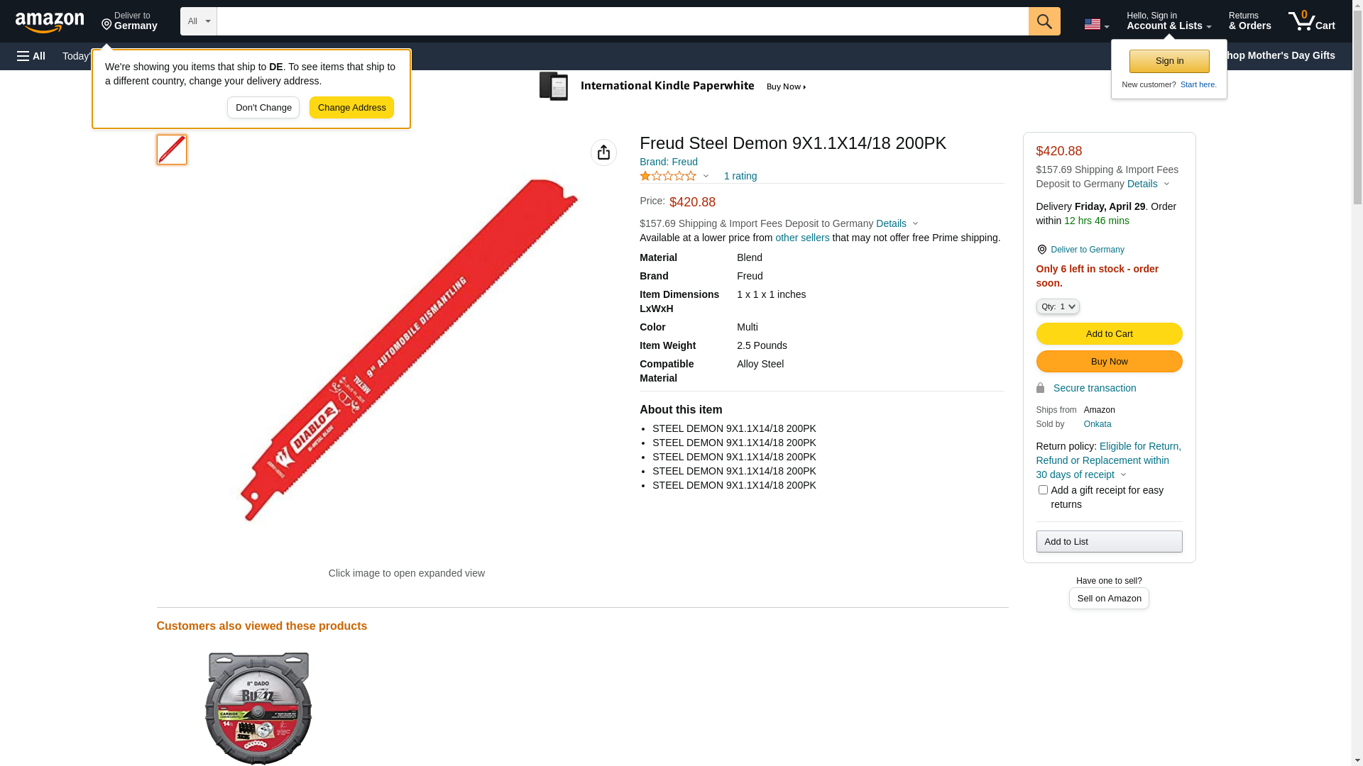 | kscdirect.com | DIABLO DS0914WBF200 | 1 | 1 | 1 @ $458.40 | |