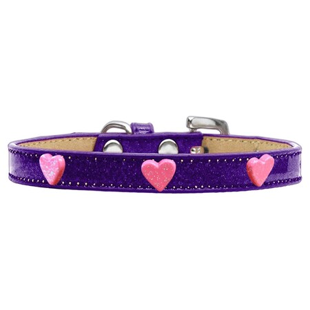 Pink Glitter Heart Widget Ice Cream Dog Collar, Purple - Size 10