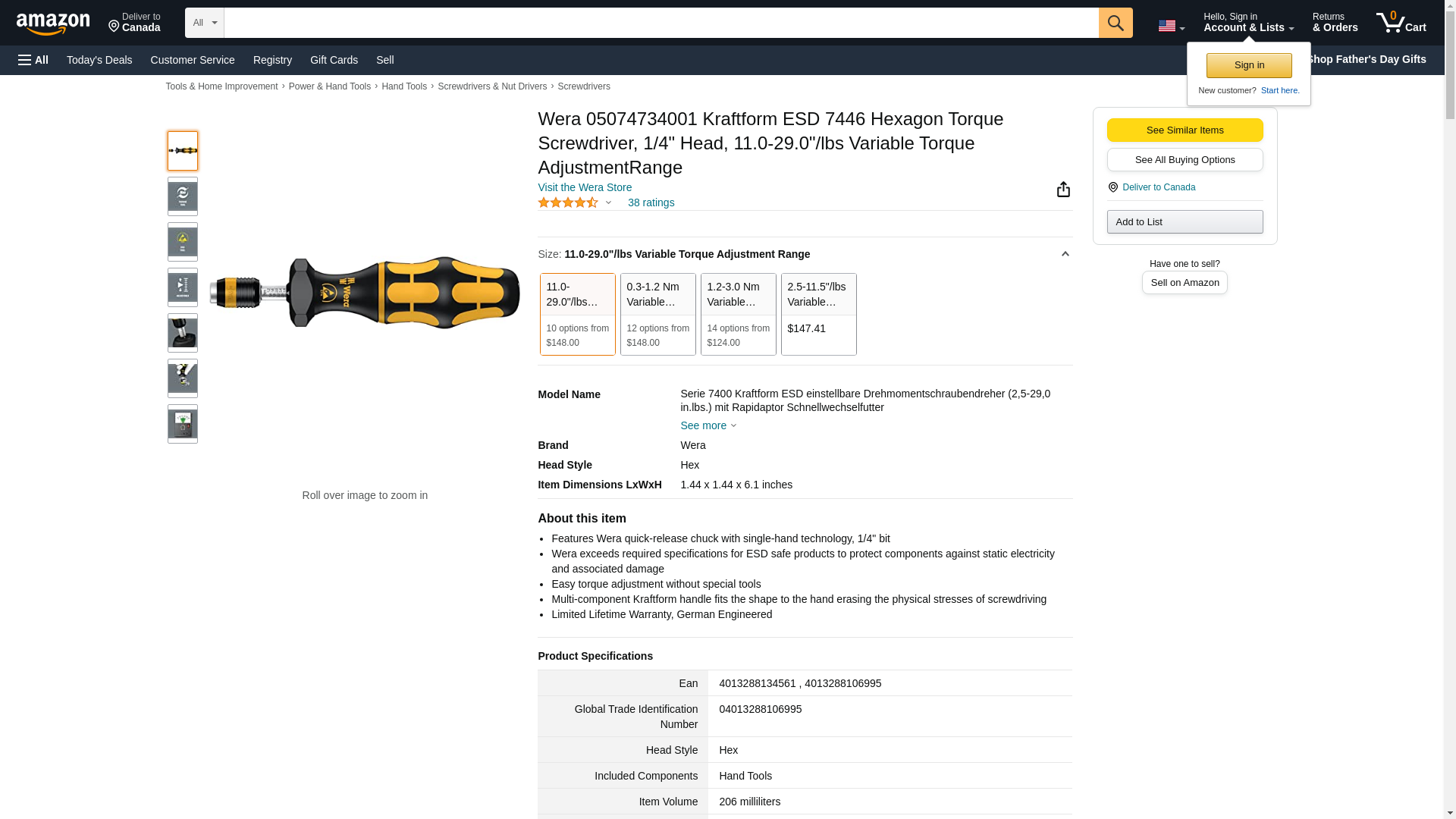 Wera 05074734001 Kraftform ESD 7446 Hexagon Torque Screwdriver, 1/4" Head, 11.0-29.0"/lbs Variable Torque AdjustmentRange