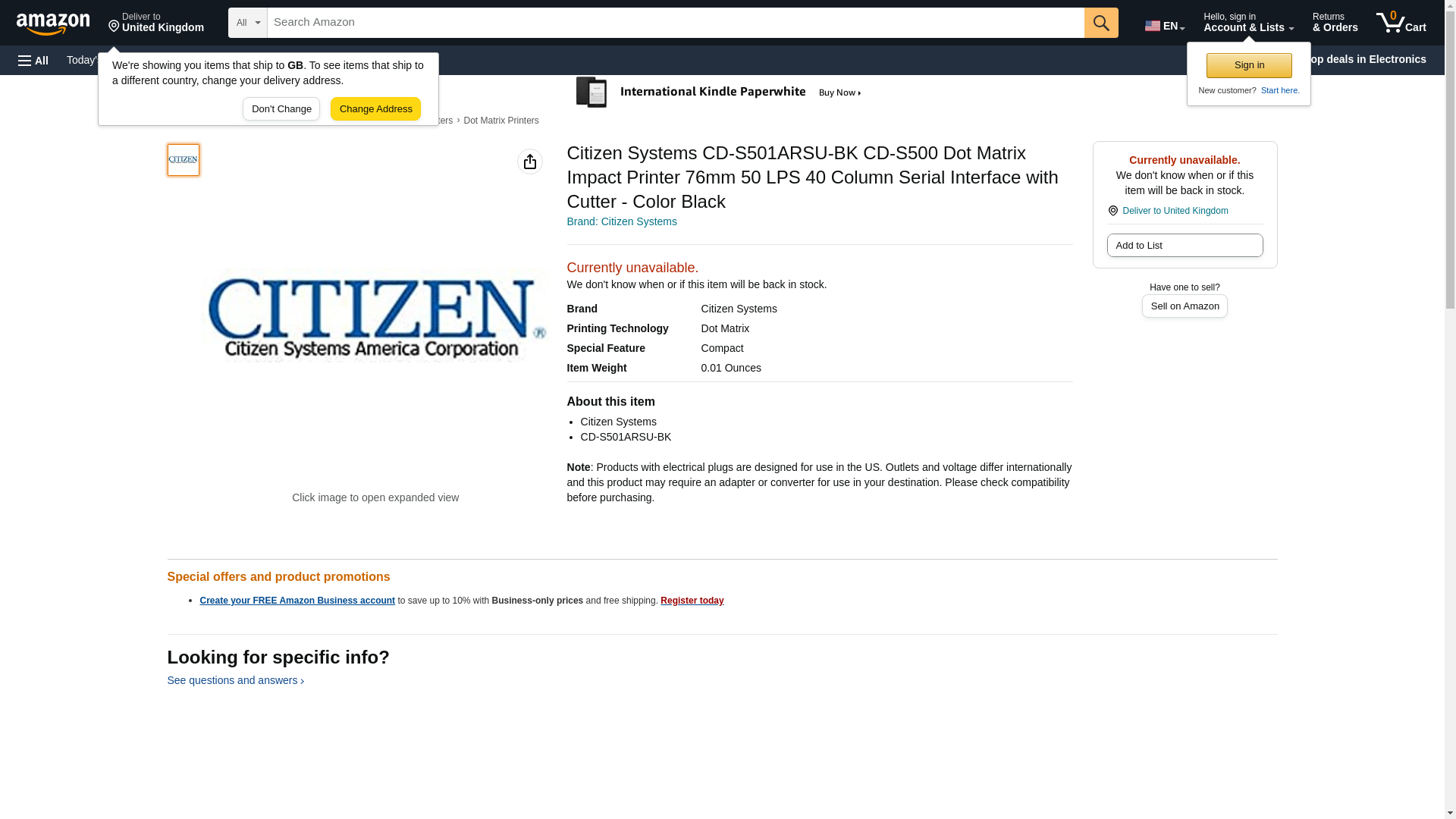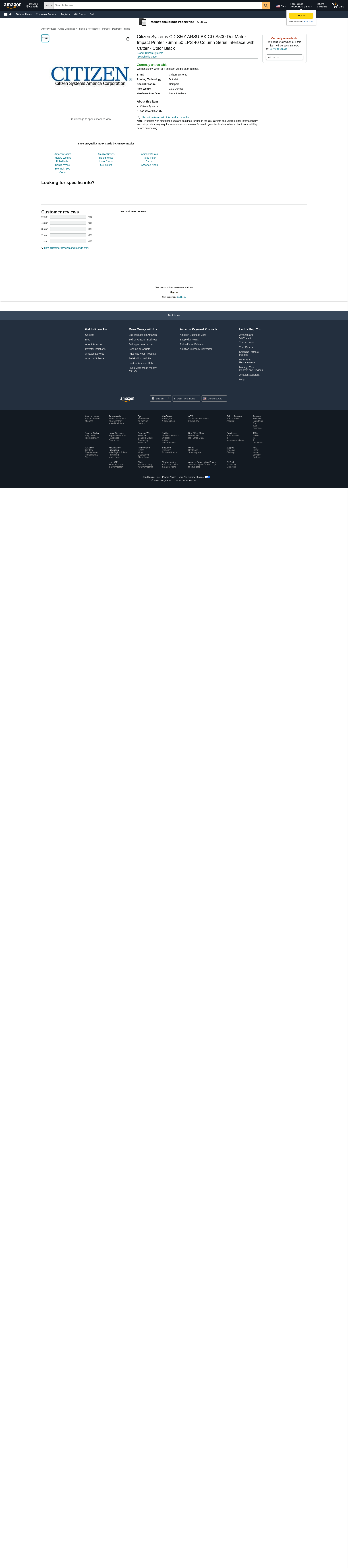 Citizen Systems CD-S501ARSU-BK CD-S500 Dot Matrix Impact Printer 76mm 50 LPS 40 Column Serial Interface with Cutter - Color Black