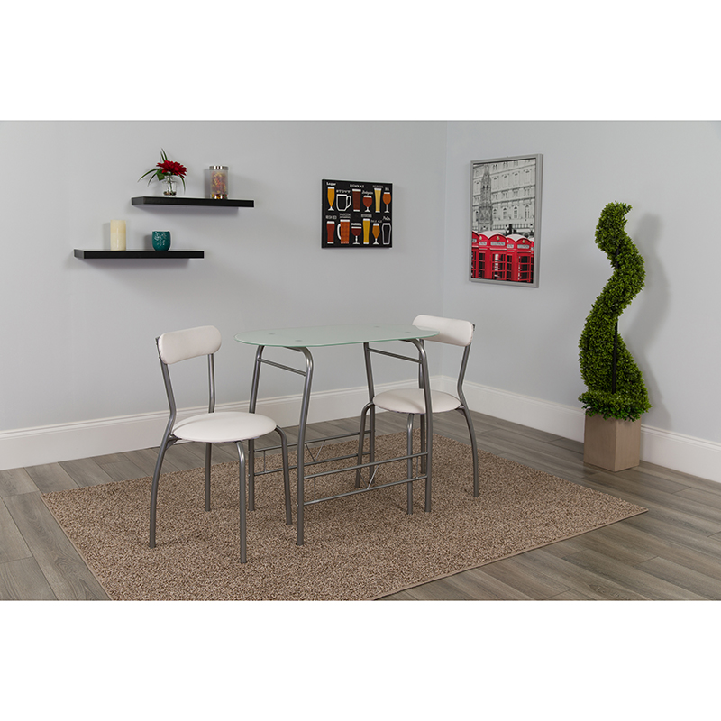 Shop Sutton 3 Piece Space-Saver Bistro Set with Glass Top Table and Vinyl Padded Chairs - Affordable, High Quality
