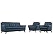 Modway Beguile Mid-Century Modern Sofa Upholstered Fabric with Sofa and Two Armchairs in Azure