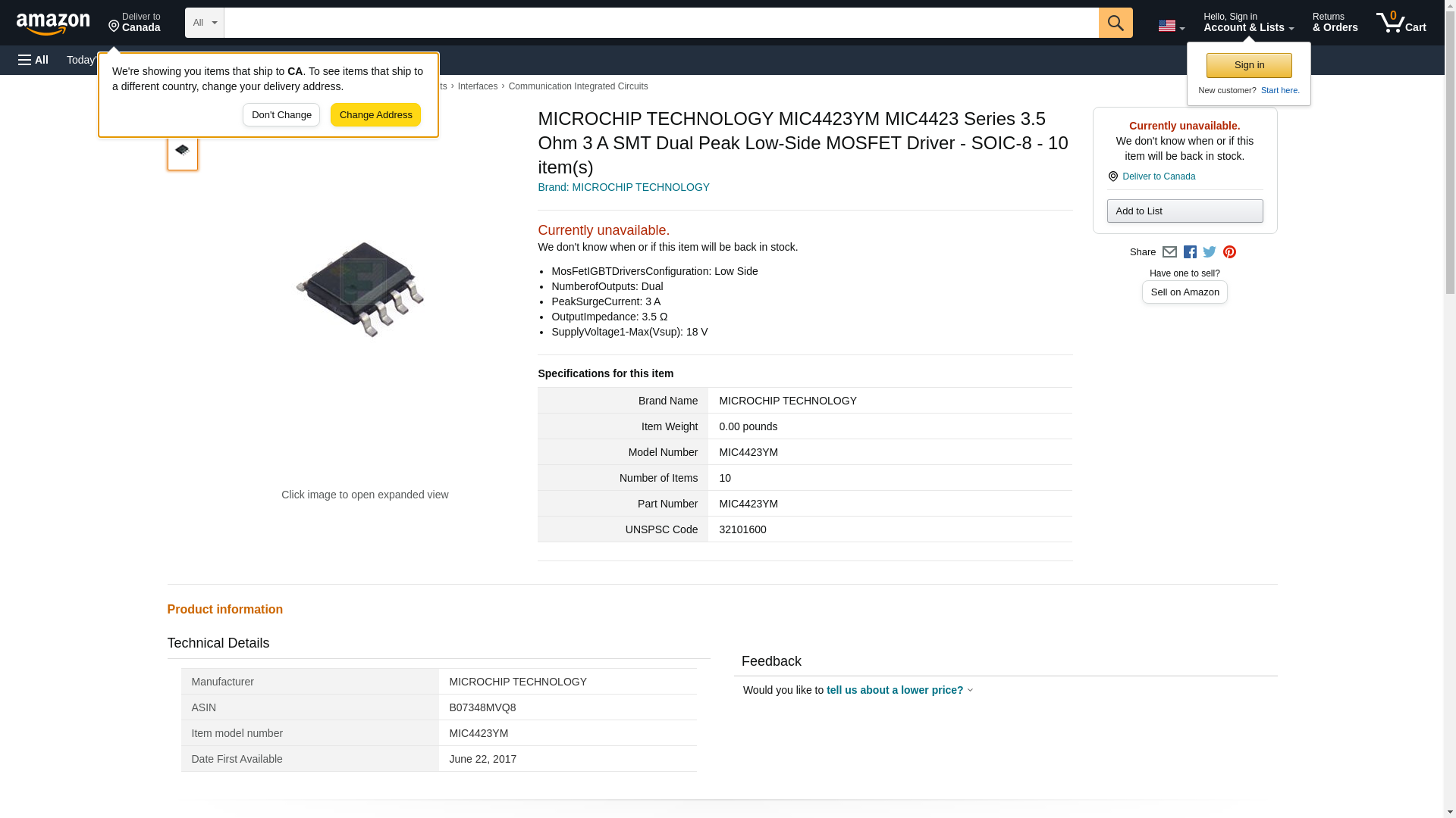 Microchip 3A Dual High Speed Mosfet Driver Rohs Compliant: Yes - MIC4423YM