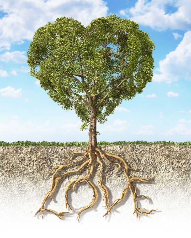 StockTrek Images Cross Section of Soil Showing A Heart-Shaped Tree with Its Roots As Text Love. Grass On The Surface &