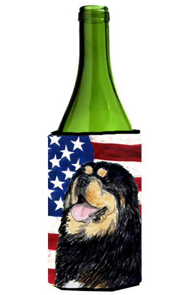 Carolines Treasures SS4039LITERK Usa American Flag With Tibetan Mastiff Wine bottle sleeve Hugger - 24 oz.