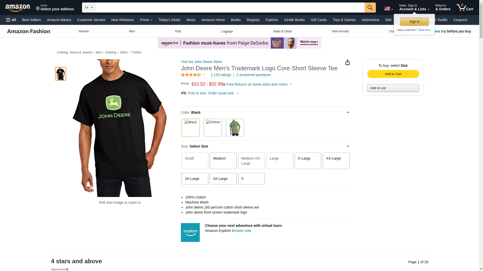 | Feature | John deere 100 percent cotton short sleeve tee |