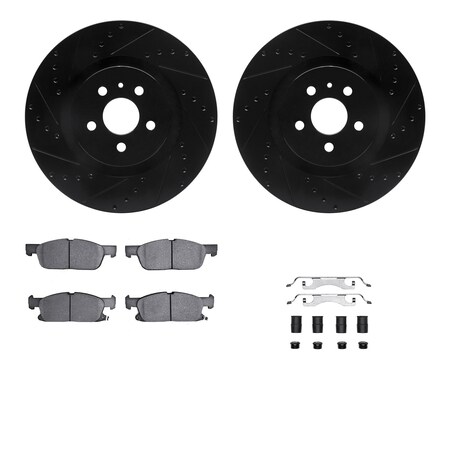 Dynamic Friction Company Front Brake Rotors Drilled and Slotted Black with 5000 Advanced Brake Pads includes Hardware - 8512-55010