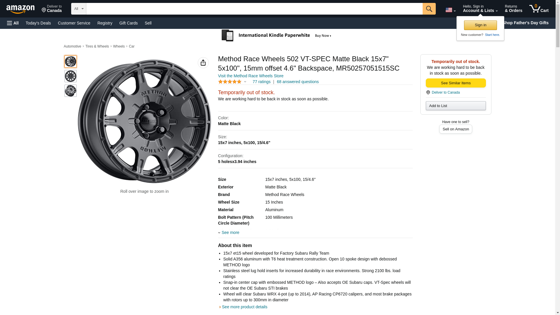 ![]() automotivestuff.com | METHODRACE-MR50257051515SC | 1 | -2 | 1 | 1 @ $266.00 |