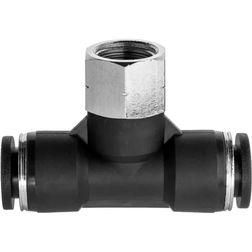 Push to Connect Tube Fitting - Nylon Plastic - Tee Adapter - 1/4" Tube OD x 1/8" NPT Female - Pkg Qty 6