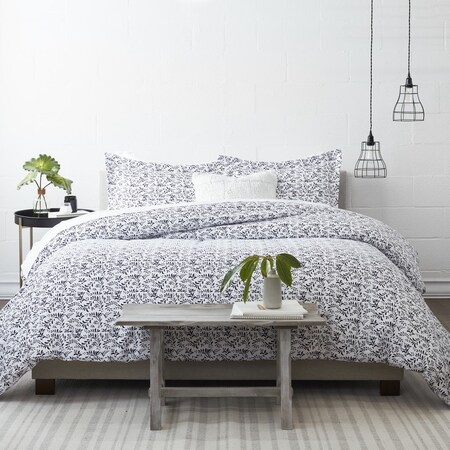 Premium Ultra Soft 3 Piece Burst of Vines Print Duvet Cover Set, Full/Queen, Navy