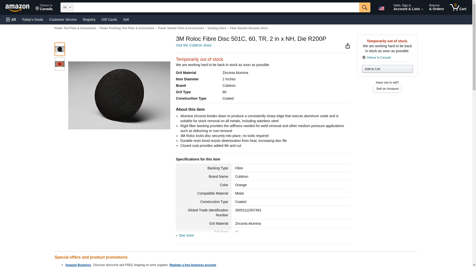 Cubitron II 3M Roloc Fibre Disc 501C, 60, TR, 2 in x NH, Die R200P