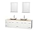Wyndham Collection Centra 80" Double Bathroom Vanity in Matte White, Ivory Marble Countertop, Arista White Carrera Marble Sinks & 24" Mirrors