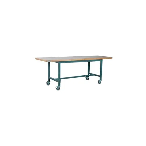 Stackbin 1012 Series Extra Long Mobile Workbench, 96 x 36", Adj. Height, Maple Square Edge, Black