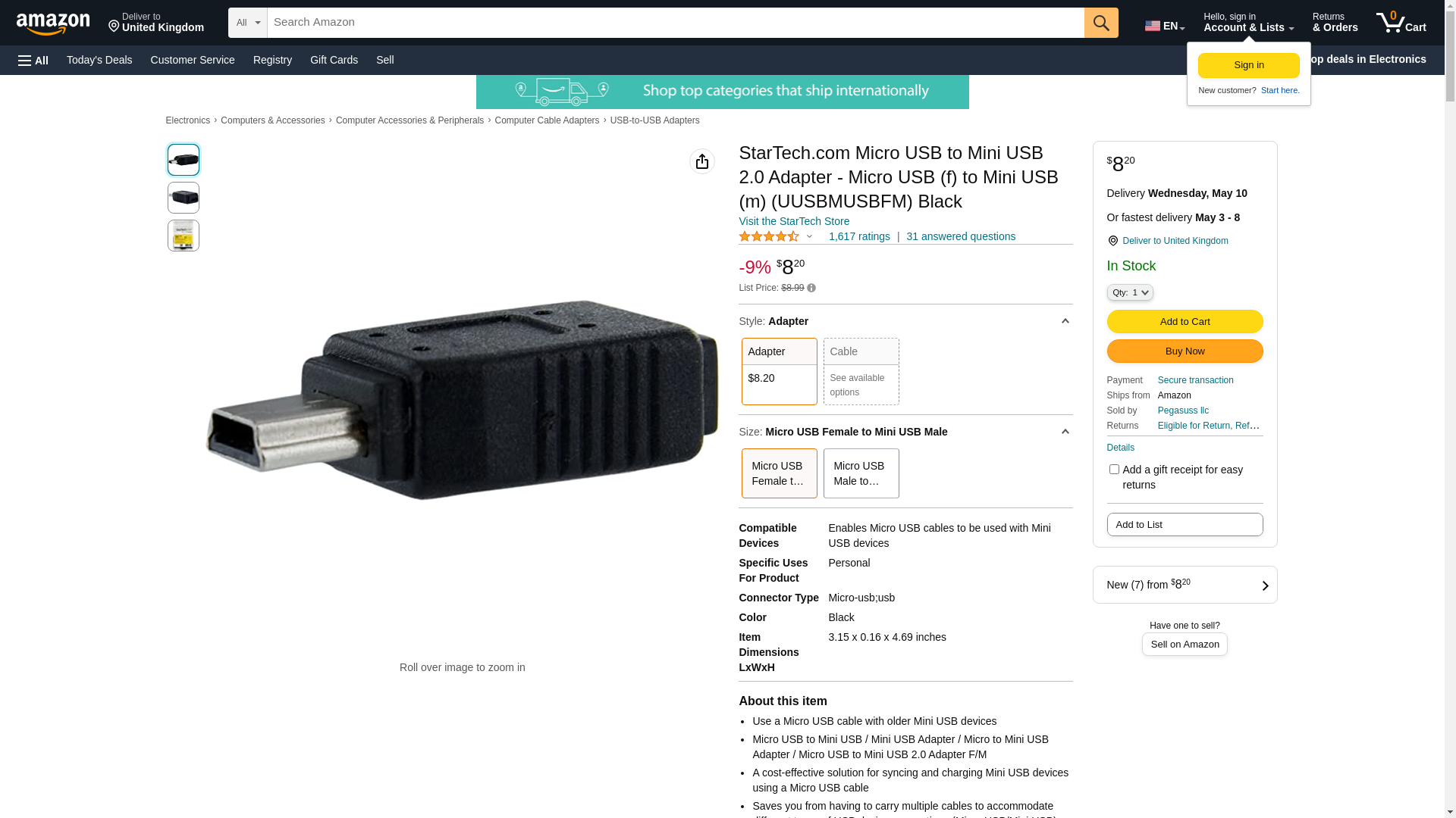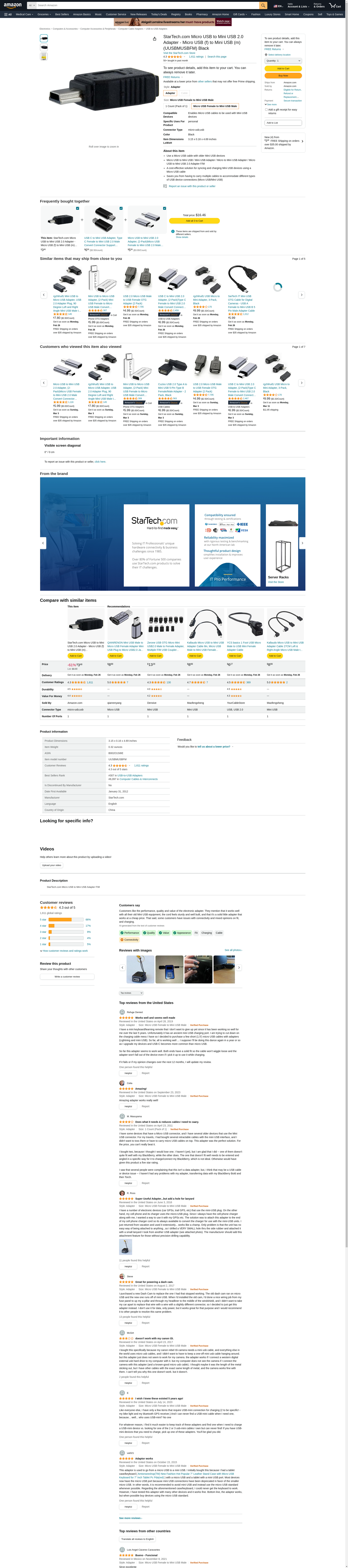 StarTech Micro Usb To Mini Usb Adapter F/m (UUSBMUSBFM)