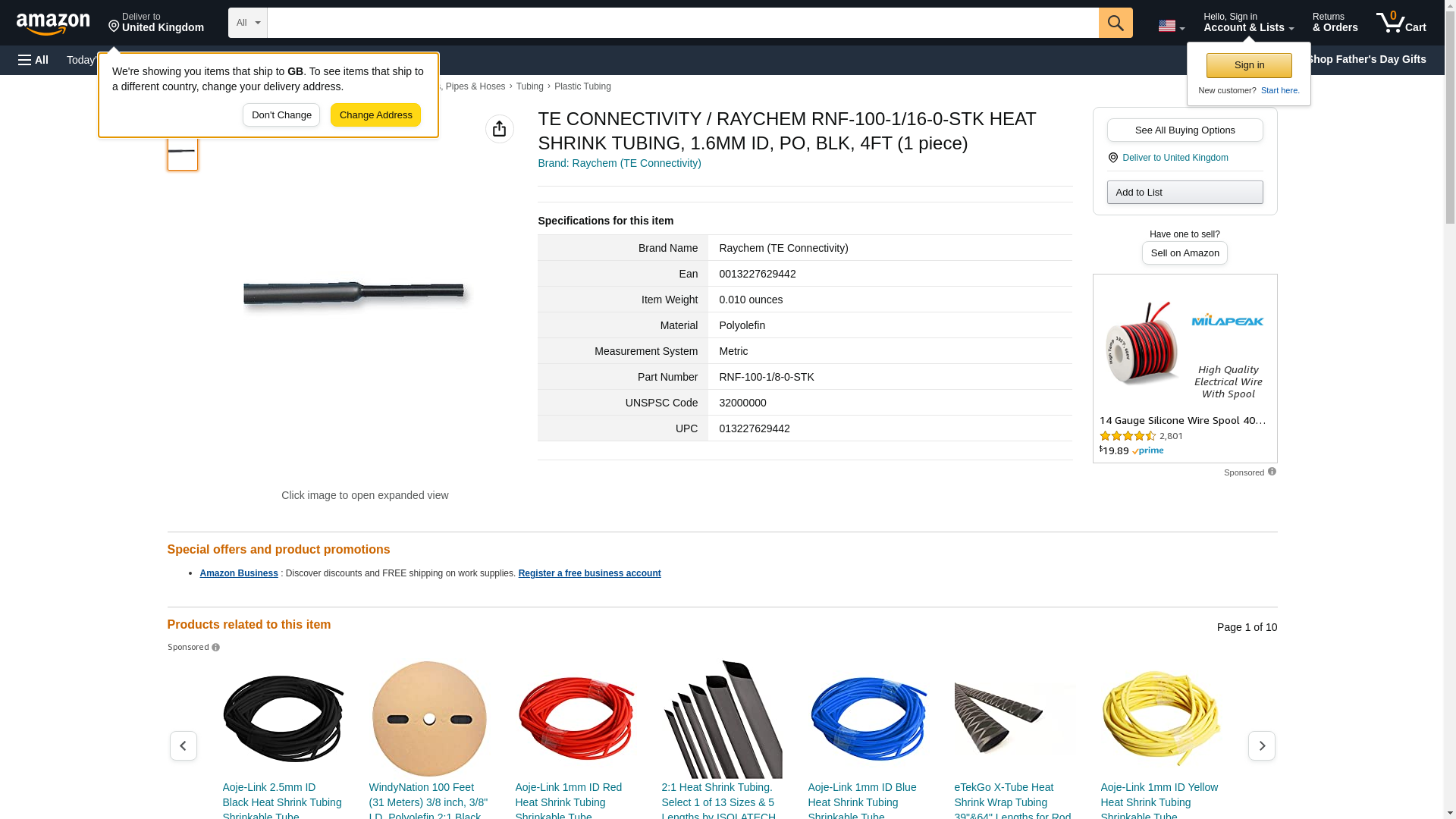 | Feature | <b>Price For:</b> Pack of 50<b>Order Unit:</b> Each\xa01 <b>Body Material:</b>: Polyolefin <b>Color:</b>: Black <b>I.D. Max Recovered:</b>: 1.6 <b>I.D. Recovered Max - Imperial:</b>: 0.063 <b>I.D. Recovered Max - Metric:</b>: 1.6 <b>I.D. Supplied:</b>: 3.175 <b>I.D. Supplied - Imperial:</b>: 0.125 <b>I.D. Supplied - Metric:</b>: 3.175 <b>Internal Diameter:</b>: 3.2 <b>RoHS Compliant:</b>: Yes <b>SVHC:</b>: To Be Advised <b>Shrink Ratio:</b>: 2:1 |