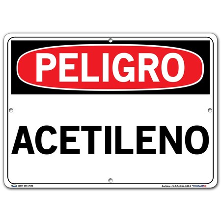 VESTIL DANGER SIGN SI-D-54-C-AL-040-S ALUMINUM .040" overall size 14.5"W x 10.5"H Acetylene ACETILENO