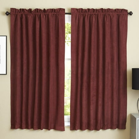 Blazing Needles Reversible Rod Pocket Room-Darkening Microsuede Curtain Panels, 108" by 52", Red Wine 2 Count