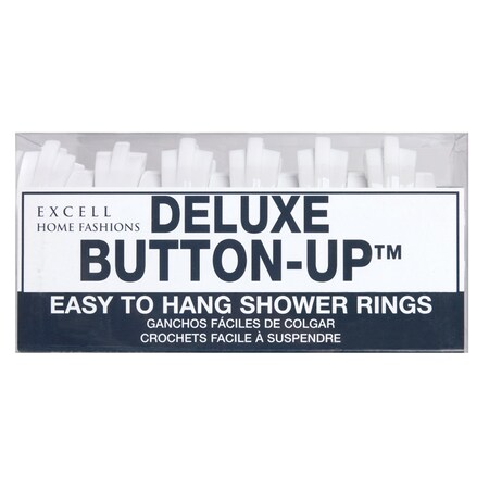 Sold as 5 UNITS at $4.22 per unit. (1 unit = Pk/12.) Button-up ring design. Plastic. White. Blister pack. Manufacturer number: 060O0-0064-100. SKU #: 43630. Country of origin: China. Distributed by Ex-Cell Home Fashions, Inc.
