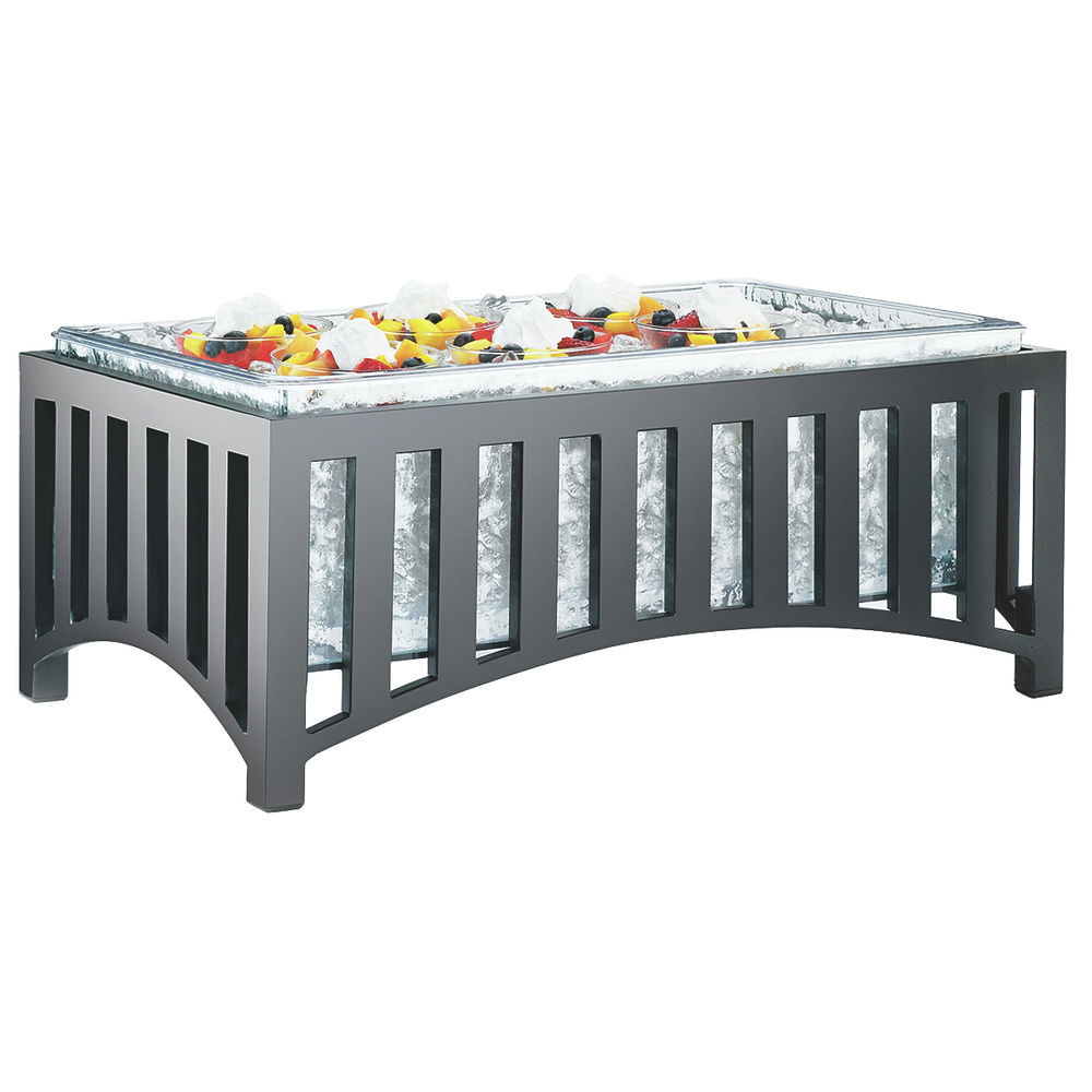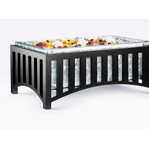 This ice housing is perfect for catering, parties, and any buffet. It is perfect for keeping beverages and/or food chilled in ice. This mission styled housing creates a fresh and clean look to any food service display.- Ice Housing- Removable ice bin for easy cleaning- Bridge style- Ice bin included- Made to hold chilled beverages and foods- Easily wipes clean- Part of the Mission collection- Made from black metal- Dimensions: 22''W x 8-1/2''H x 14''L